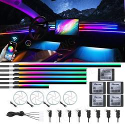 Streamer de música 18 en 1, iluminación ambiental, accesorios para Interior de coche, doble zona RGB 64, tira acrílica LED de neón, decoración de coche, lámpara de ambiente